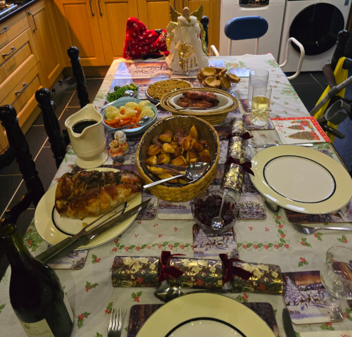 Merry Christmas everyone! At the end of the year, I've realised I've been woeful at updating my website with news, activities, and developments. So in the next 12 days, my plan is to do the year in review, and make a post about each month. Then hopefully I want to develop a proper blog which I'll try and keep regularly updated. To start the ball rolling, I'll share a picture from Christmas day. The photo shows the massive feast I cooked for both my Mum and me. It all went very well (except possibly the yorkshire puddings), but far too much food... although we had it again for Boxing day! Also shout-out to Farmer's Pantry butchers in Penarth whose 'feast' was amazing value with some really good produce.